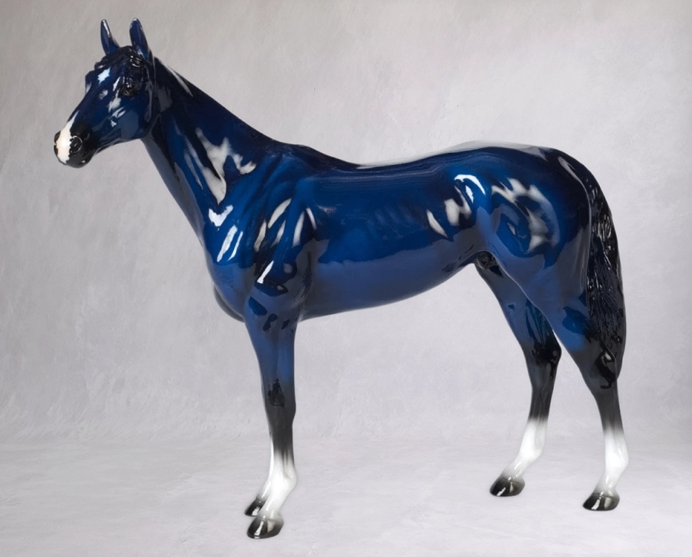 Ukraine Benefit Model | glossy electric blue shimmer w/ pearl basecoat, w/ blaze and four socks | 2022 | Ebay Auction Benefit Test Run Model (1 made) With Certificate of Authenticity |
