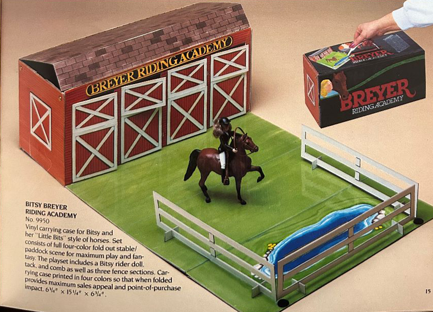 9950 | Bitsy Breyer Stable Set With carrying case, doll, plastic tack, comb, 3 sections of fence |