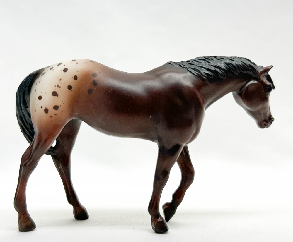 B-CS-10318 | April Fool's Blind Bags (Halayi) | palomino snowflake blanket appaloosa, stockings, bald face | 2025 | April Fool's Tease Released as a gamblers choice of 4 molds representing minis of previous traditional runs: • Mini “Pinto Stock Horse Stallion” • Mini "Spotted Belgian” • Mini “Halayi" • Mini “Arabian Mare" This model is painted to represent a mini version of the "Arabian Mare" Proud Arabian Mare release #497679 |