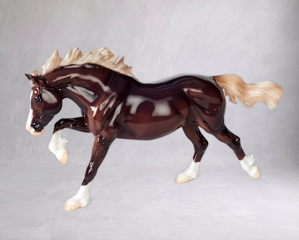 The Cantering Welsh Cob was released in 2024 as part of Breyer's Premier Collection. It was sculpted by Eva Rossiter and is Breyer mold #826.