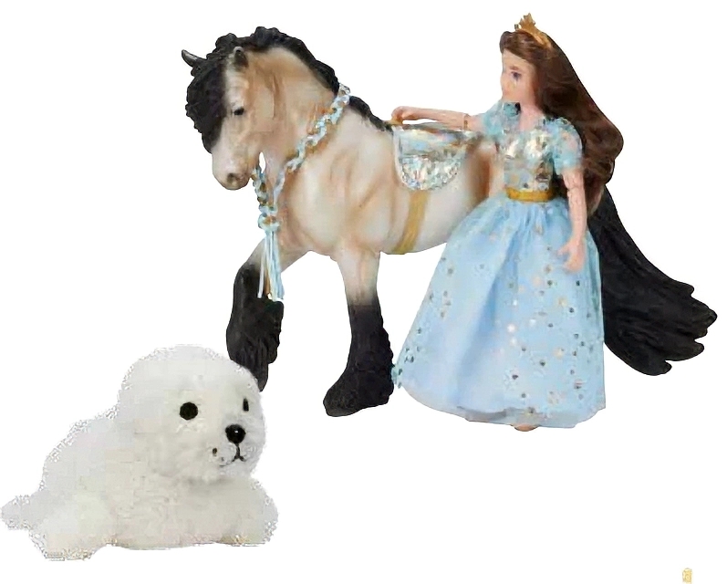 pearly light buckskin | 2026 | Holiday Playset came with bareback pad and neck rope, a 6" articulated doll in princess tiara, and boots, plus a plush white seal |