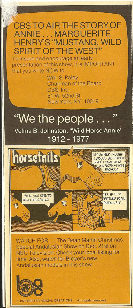 Identify Your Breyer | Home | Web Specials | Special Events | Model Horse Glossary | Site Index | JAH Home Just About Horses - 1978