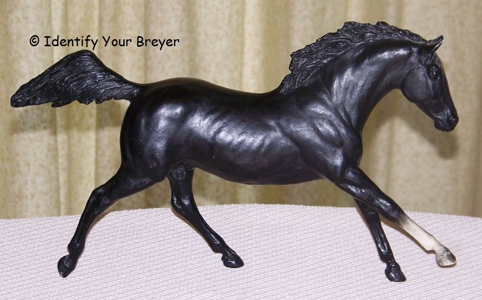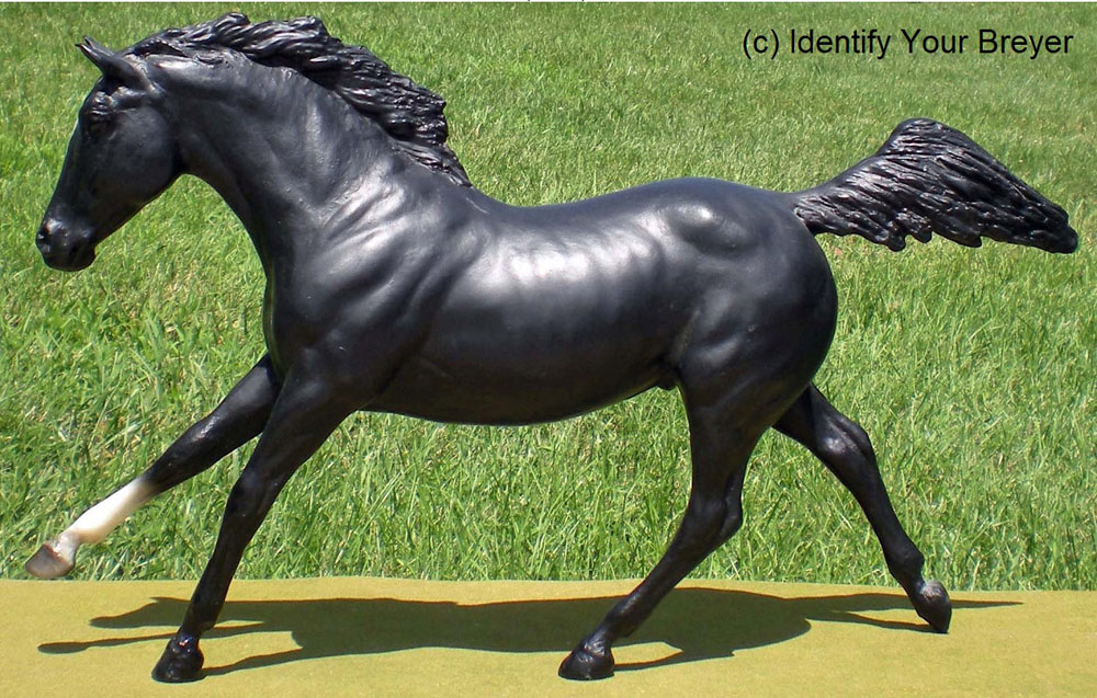 The Black Beauty mold was introduced in 1979 and has a round "Breyer Molding Co." stamp, and some (but not all) of the early models have the "B" stamp as well. The name "Black Beauty" was taken from the classic book Black Beauty: The Autobiography of a Horse by Anna Sewell. Interestingly, a #89 Black Beauty was the first model produced in Breyer's New Jersey factory. Several other molds have models with the "Black Beauty" name as well: Fury Prancer, Morganglanz, Silver (twice), Western Horse, Western Pony (twice), and the Classic scale Black Beauty (also twice) and the Warmblood Stallion. The Black Beauty mold was sculpted by Chris Hess and is Breyer Model #89.