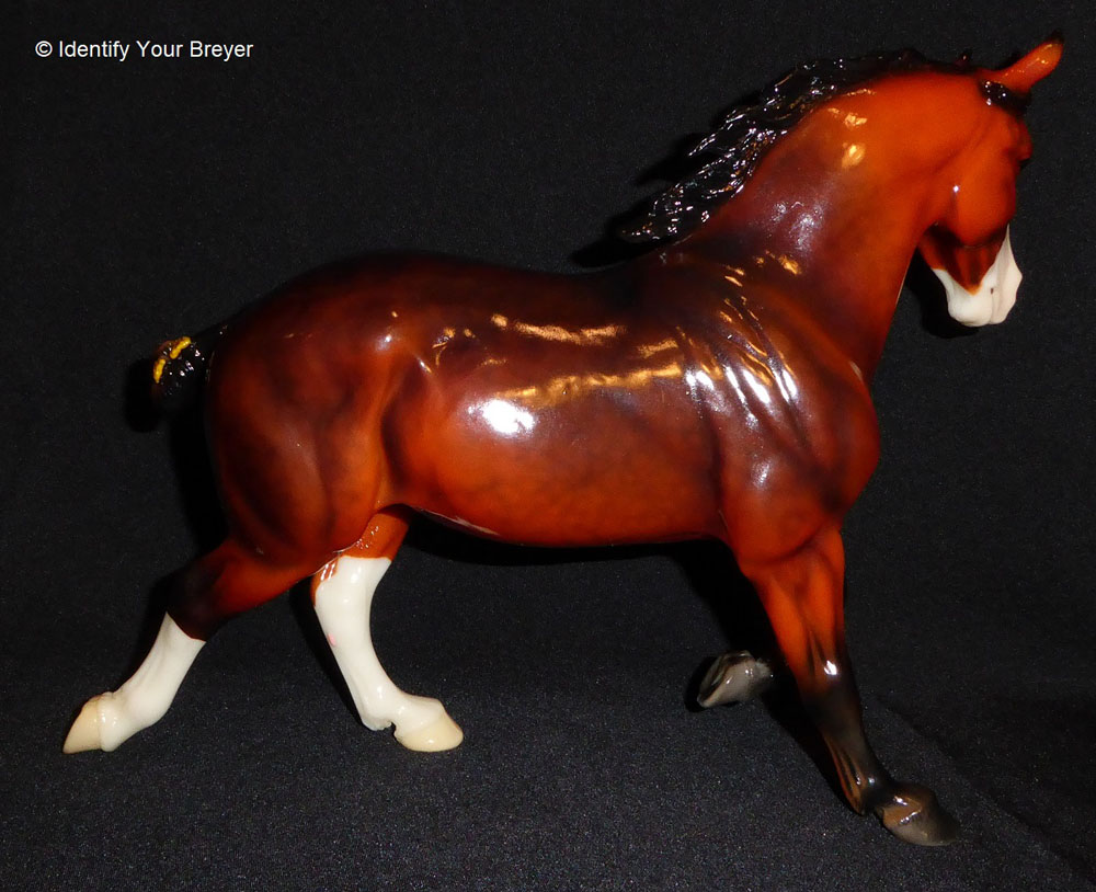 1252 | Belgian Mare | glossy palomino, star, blaze, snip, shaded muzzle, white mane/tail, four socks | 2004 | BreyerFest Live Show Prize Model (4 made) |