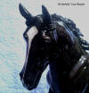 573 | Cedarfarm Wixom | semigloss dappled black, blue tail ribbon, no white markings | ~2003 | With hang tag. Showing dappling on hundquarters. |