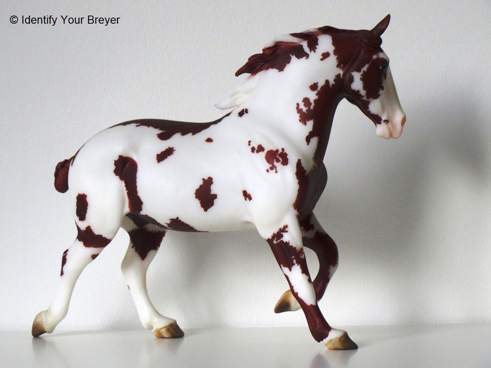 710001 | Siren | glossy red bay sabino, bald face, black points, high rear stockings, yellow tail ribbon | 2001 | BreyerFest Raffle, Live Auction (26 made) |