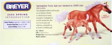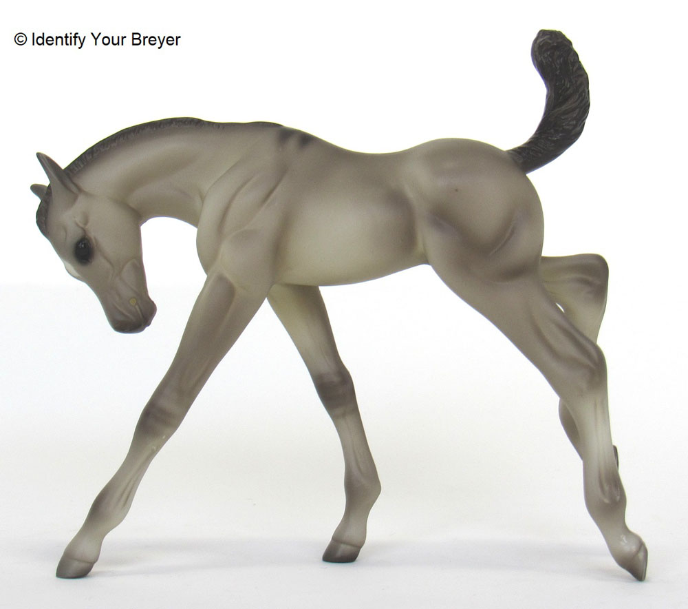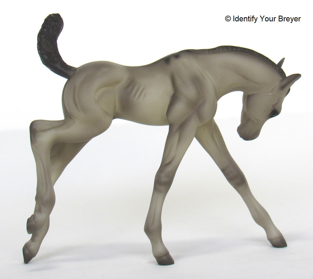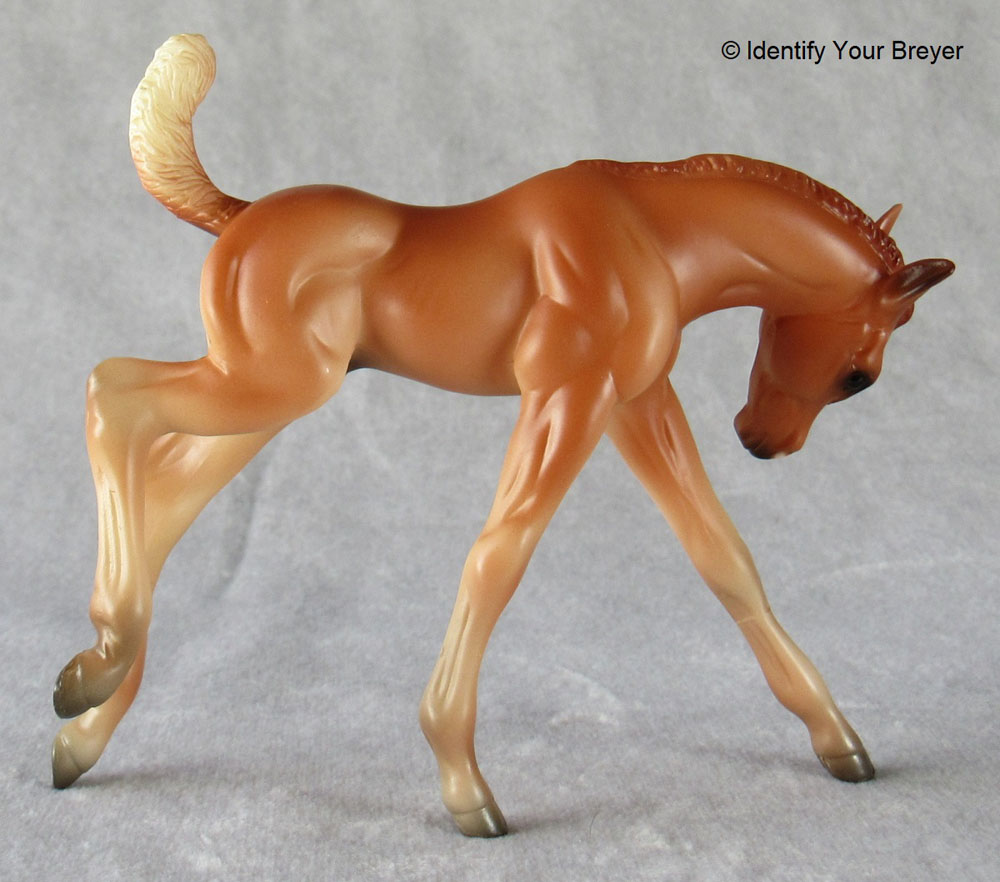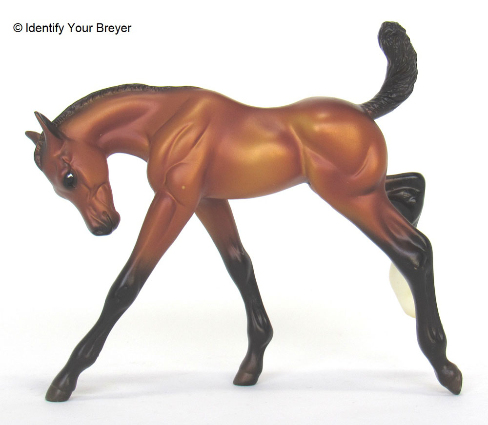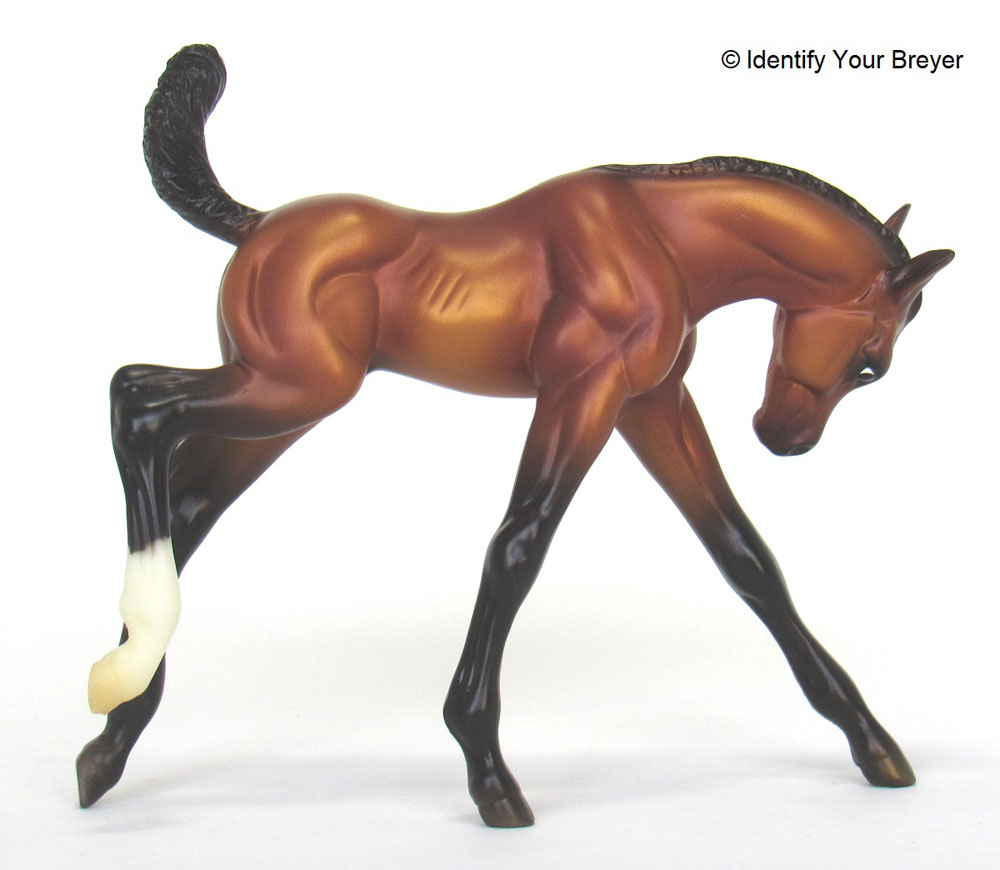 The American Quarter Horse Foal, also called the Frolicking Foal, was introduced in 2005. It was sculpted by Kathleen Moody and is Breyer mold #631.