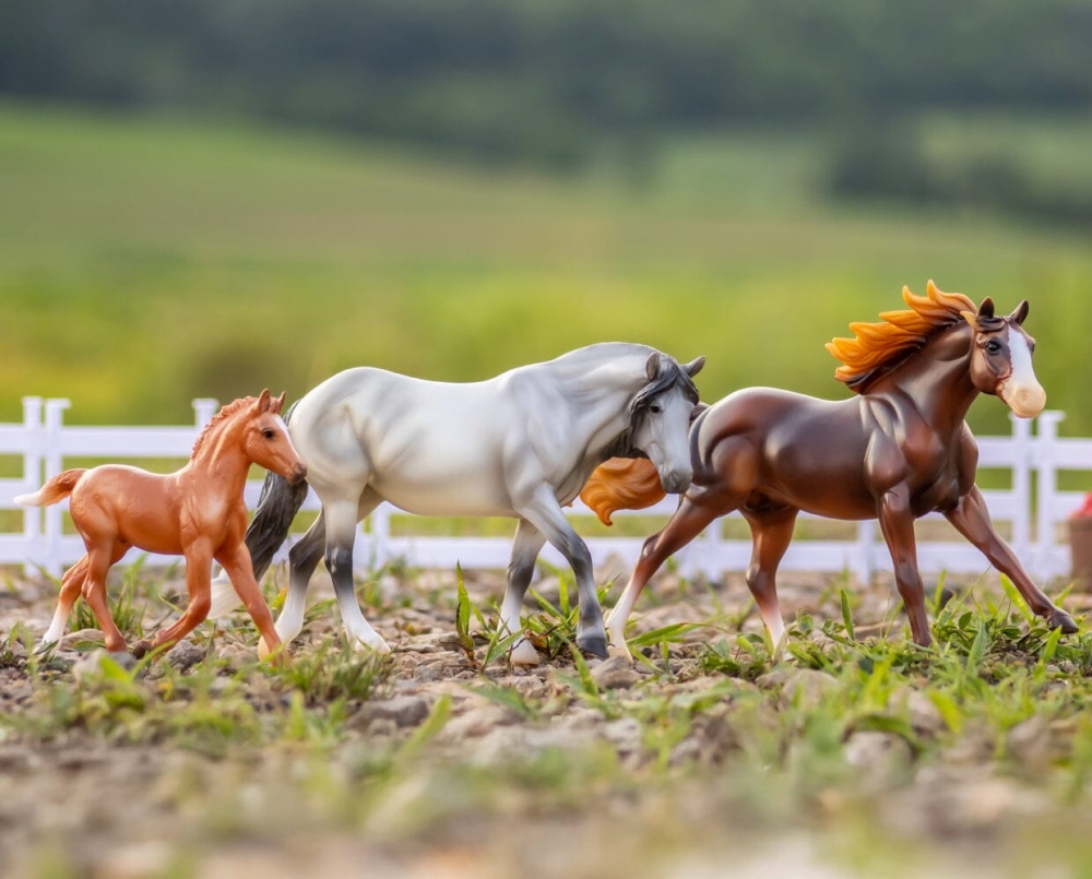chestnut, stocking on left hind, blaze | 2025-current | Re-Release of #5582 Originally released as a Tractor Supply Special Run for fall of 2023, but that set came without accessories. |