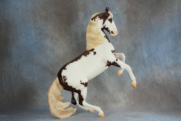 Dapple Palomino Pinto Desatado (mold #721) with roaning | dappled palomino pinto, wide blaze, white mane/tail, fore socks, hind stockings | 2014 | BreyerFest Live Auction (1 made) |