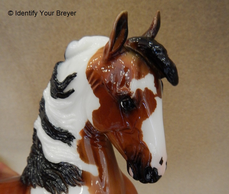 1742G | Glossy Picasso | glossy bay pinto, irregular blaze, black and white striped mane, black tail, off fore sock | 2015 | BreyerFest Open and Youth Show Prize (50 made) With Certificate of Authenticity |