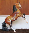 Glossy star rose dappled sabino | rose dappled sabino, diamond, shaded muzzle, rose and grey mane/tail, dark grey legs | 2012 | BreyerFest Live Auction (1 made) |