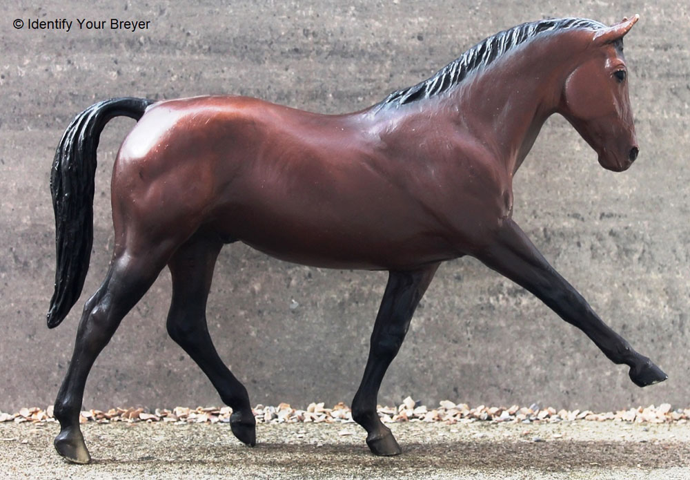 | Hanoverian Horse with English Saddle and Bridle | matte and semigloss dark to medium bay, no white, black points | 1980 |