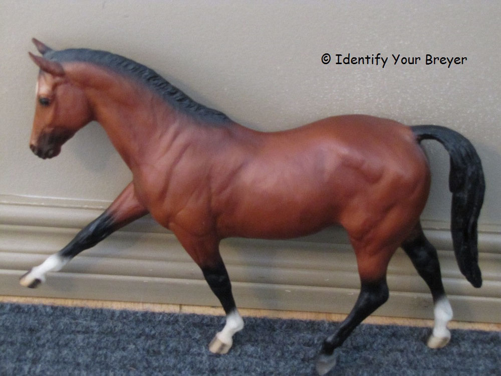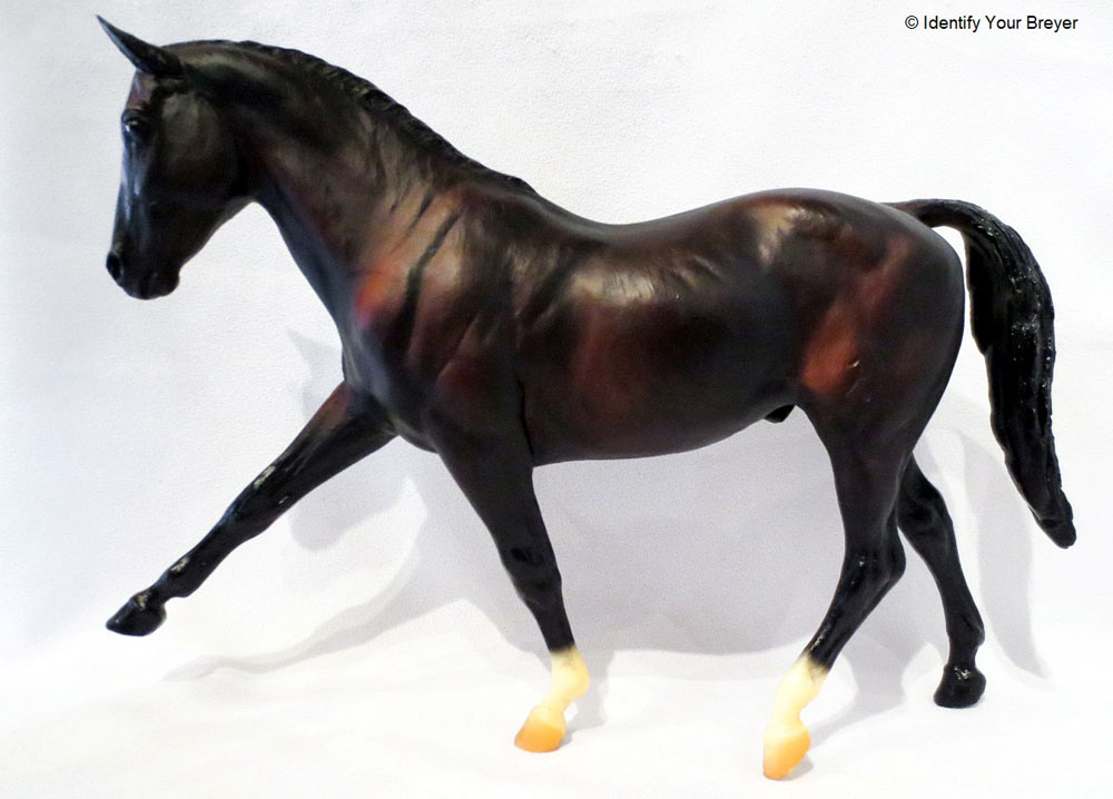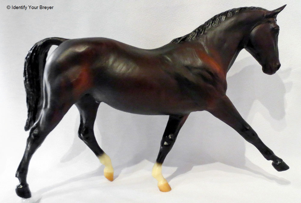 red-shaded dark bay, solid face, black points, near fore and hind stockings | 1993 | Spiegel catalog (1,130 made) |