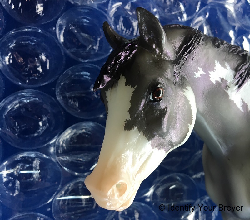 1363 | Glossy Shasta Moon | glossy blue roan pinto, star, snip, black mane, black shading to white tail | 2009 | BreyerFest Live Show Prize (37 made) With Certificate of Authenticity |