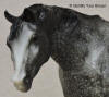 882 | Ichilay the Crow Horse - Circled Eye | light grey with brown flecks, solid face, charcoal-brown mane/tail, grey shading, off hind stocking, red around eye | 1993 | With hang tag. Tag is the same for all four variations. |
