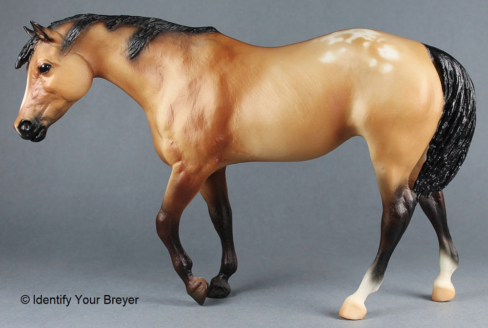 1159 | Sheza Good Sport | buckskin blanket, dark brown points, shaded muzzle, blaze, hind socks | 2002 | Hall of Fame Edition (10,000 made) |