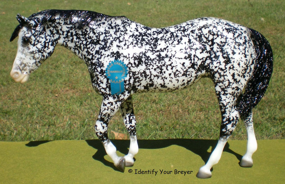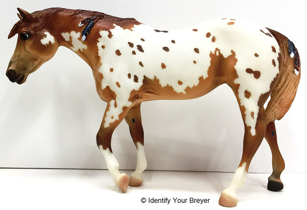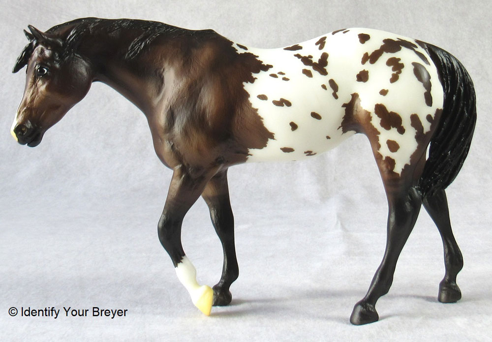 Bay Snowflake Appaloosa | bay, snowflake spatter, black points, four socks | 1999 | BreyerFest Live Auction (1 made) |