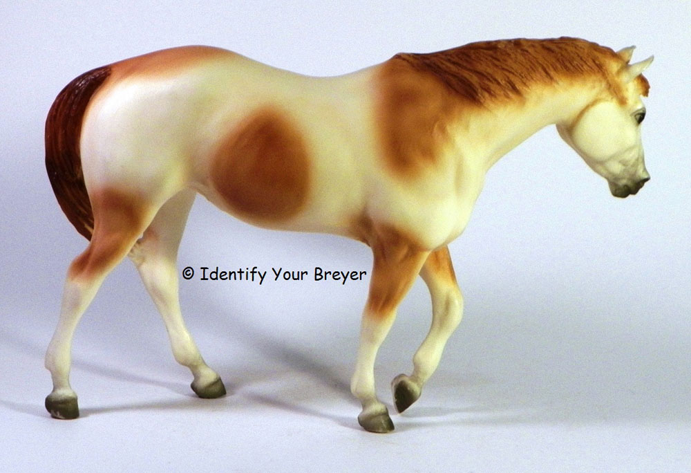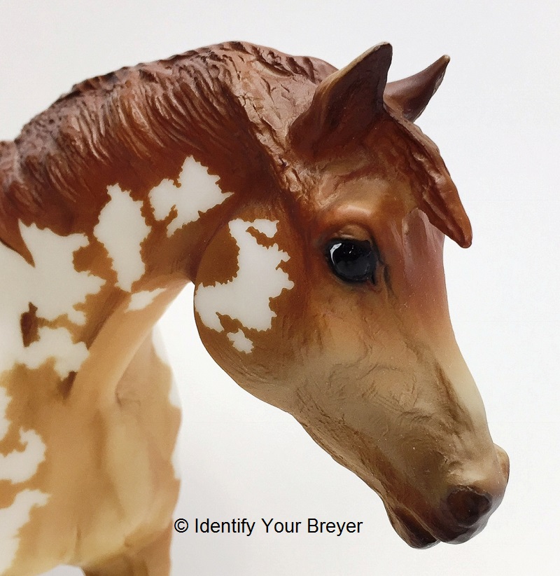 710402 | High Sierra | chestnut overo, flaxen mane/tail, off hind stocking, bald face, blue eyes | 2002 | BreyerFest Special Run (1,300 made) |