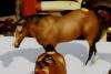 Indian Pony | bay pinto, broken blaze into snip, pink muzzle, black points, white at upper tail, four socks | 1996 | Sales Representative Model | |||