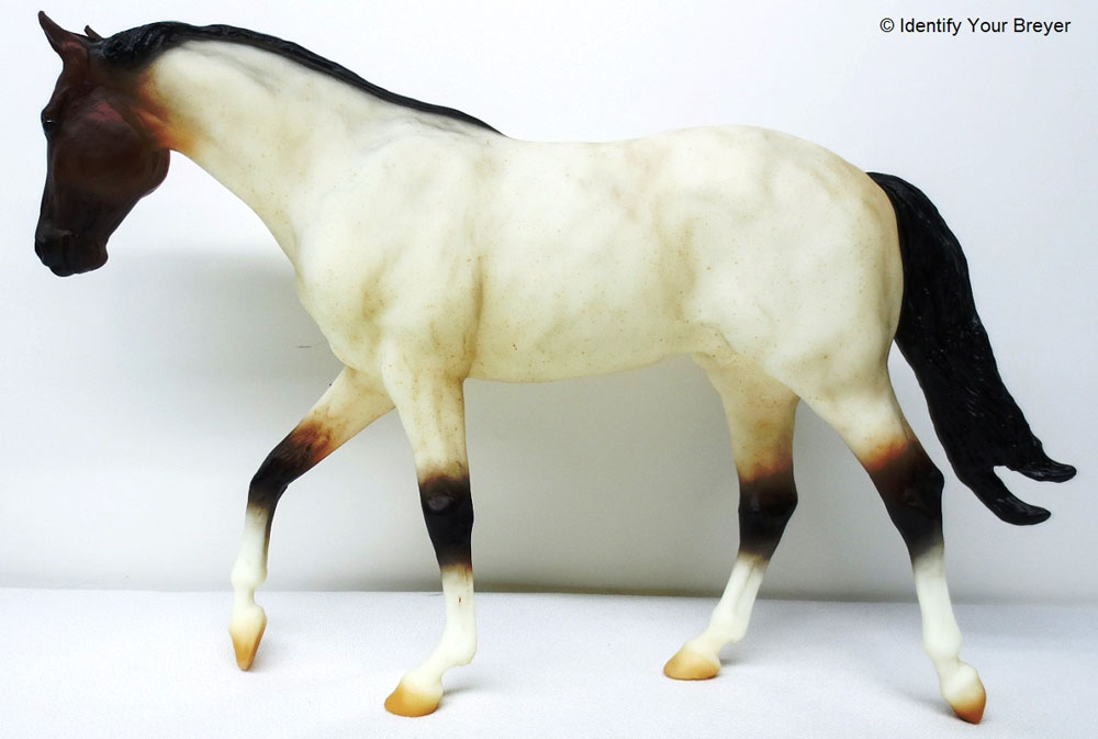 1393 | Glossy ELCR Benefit Model | glossy dun, blaze, dark brown mane/tail, dorsal stripe, hind socks | 2009 | BreyerWest Prize Model (~4 made) |