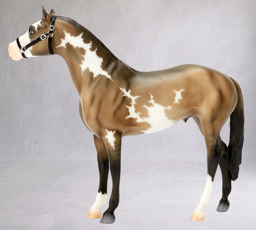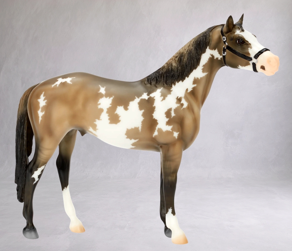 B-EV-10775 | Thingvellir | black dun (grullo) overo pinto, stocking on right front and left rear legs, apron blaze | 2026 | BreyerFest Special Run (2,300 made) "BreyerFest 2026" stamped on belly |