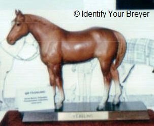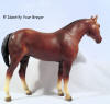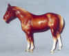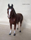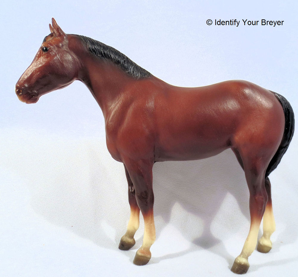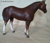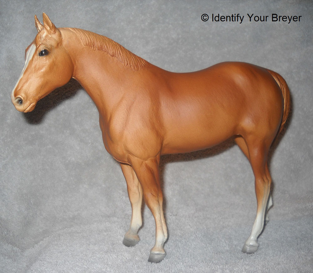 101 Quarter Horse Yearling semigloss liver chestnut, blaze, black mane/tail, some with two hind stockings, some with four stockings 1970-1980 Subject of Breyer's "Name the Yearling" Contest