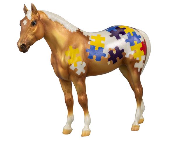 1736 Hope - Autism Benefit Horse red, blue, and yellow with autism symbol puzzle pieces, eye whites 2015