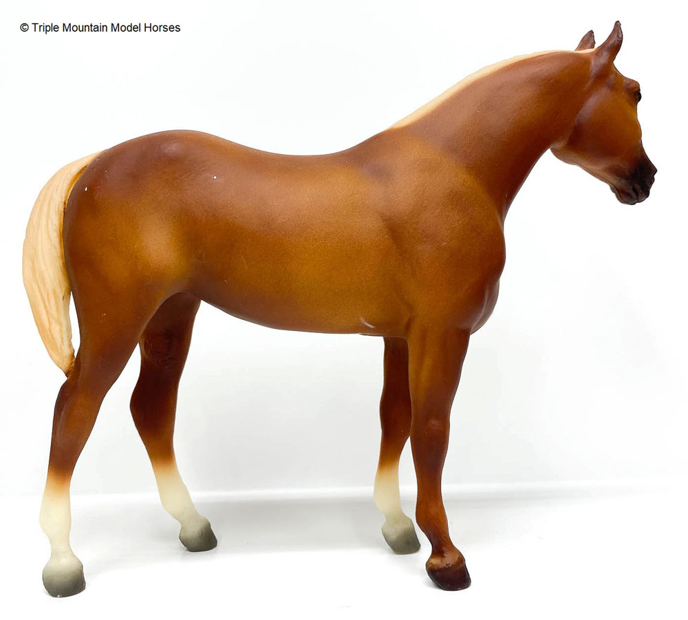 (c) Barbara Schweder 102 Quarter Horse Yearling matte and semigloss chestnut, flaxen mane/tail, blaze, four stockings 1970-1980 Color variation.