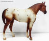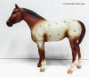 chestnut semi-leopard, blaze, dark chestnut mane/tail, reddish chestnut legs, near fore stocking, hind socks Jan-Jun 1996 Collectors' Edition