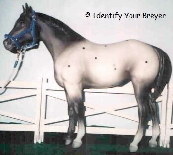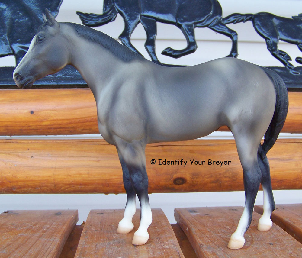 (c) Wendy Hick Shaded Grey with Dorsal Stripe shaded grey, dorsal stripe, blaze, snip, black points, four socks 1996 BreyerFest Live Auction