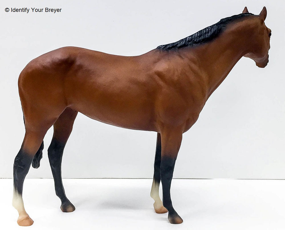 The Secretariat mold was introduced in 1987 as part of Breyer's Artist Series with the "� Breyer Reeves" linear mold stamp and is a portrait model of famous Thoroughbred race horse Secretariat. On early models Secretariat's face is flat and there is some forelock on the right side of the head as well as the left. Beginning in about 1988-1989 the model was changed so that the frontal plane bulges upward and the right side forelock is missing. The mold was sculpted by Chris Hess and is Breyer mold #435.