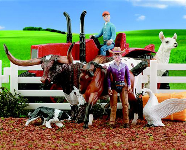 5410 | Tractor Play Set With farmer, cowgirl, Quarter Horse, steer, llama, swan, Border Collie, hay bale and tractor. |