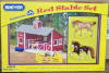 79197 | Stablemates Country Stable Set With Standardbred, red and white stable, fence, jump. |