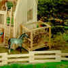 With articulated figure, 2 horse blankets, 3 buckets, 3 brushes, 2 pitch forks, 10-piece fencing and mini Breyer boxes.