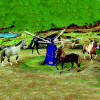 With articulated rider, tent, sleeping bag, picnic table, campfire and Dog II.