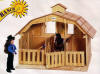 Two stalls, with opening doors and barn sign. Does not include models or doll.