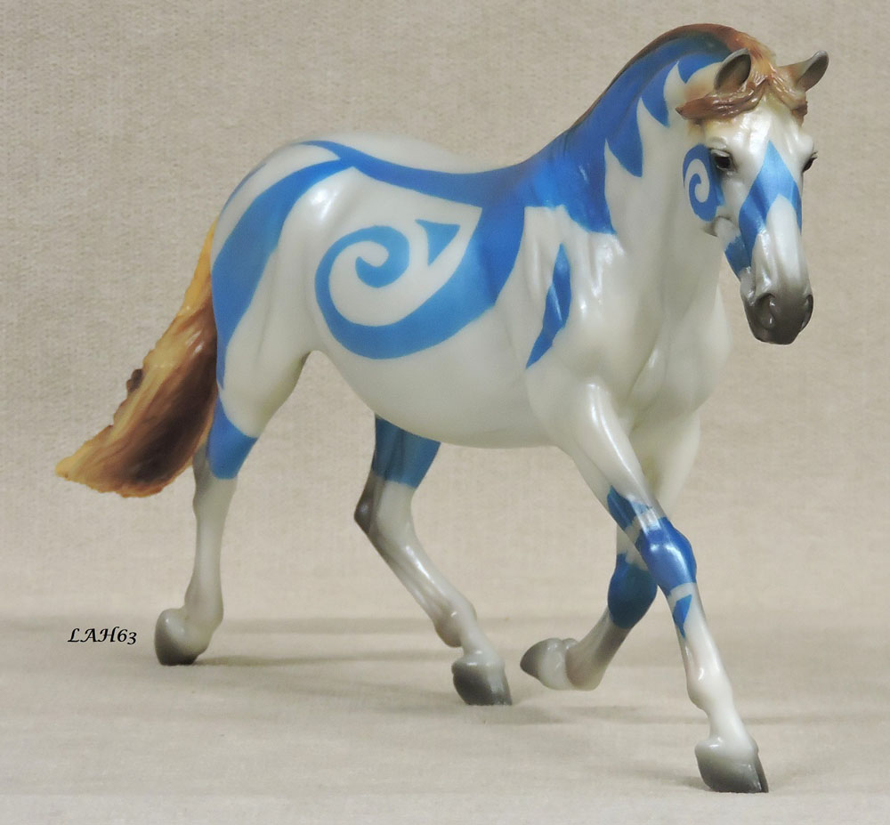 711369 | Boudicca | mulberry grey and soft pearl, ginger mane/tail and woad war paint | 2020 | BreyerFest Special Run (1,200 made) Stamped "BreyerFest 2020" on belly |