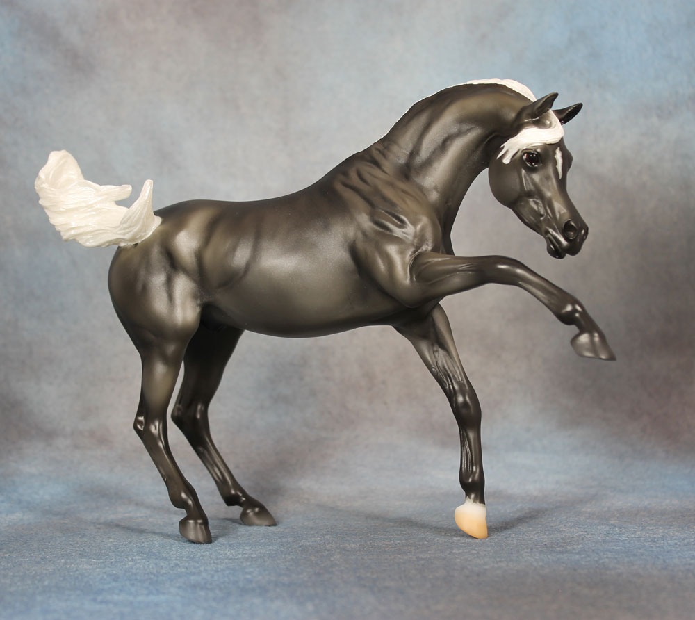 Metallic Smoky Black Ashquar (mold #727) | metallic smoky black, creamy mane/tail, off foreleg sock |