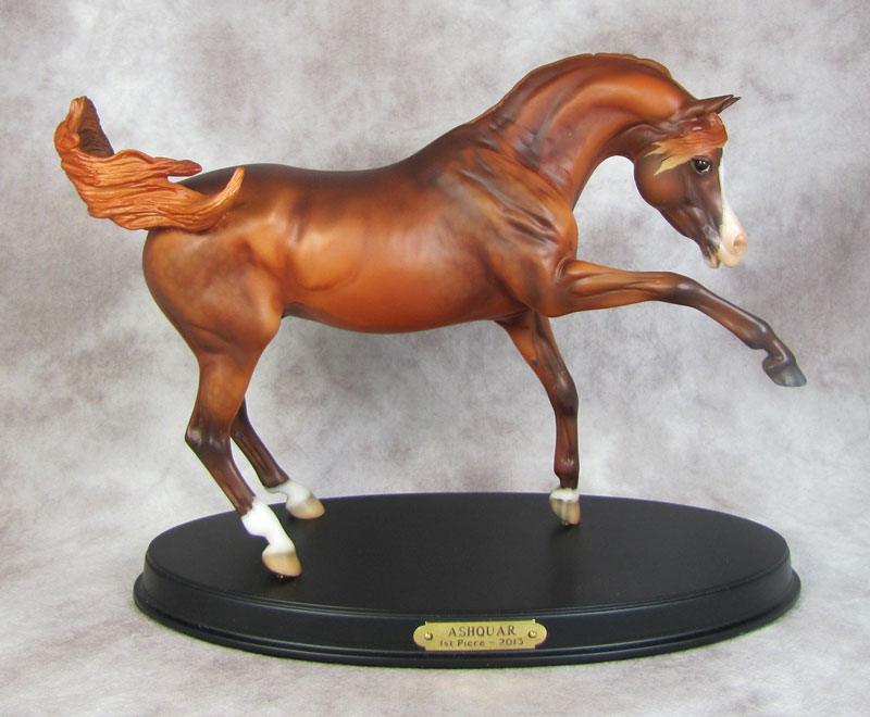 Ashquar was introduced in 2013 as a part of Breyer's Premier Collection. It was sculpted by Brigitte Eberl and is Breyer mold #727.