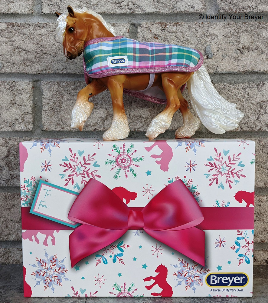 10209 | Tannenbaum | glossy green with metallic gold and pearly beige highlights, stockings on all four feet, gold hooves, white shaded mane and tail | 2024 | Web Special (≃ 1,000 made) Stamped "Tannenbaum 2024" on belly |
