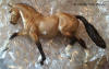 B-EV-10469 | Seize The Day Surprise | Matte sooty palomino, large star, snip, stocking on right front leg. | 2025 | BreyerFest Special Run (1,020 made) Split run of 6 color variations. Deco is glossy only, Blue Roan is matte only, other 4 colors glossy & matte versions. “BreyerFest 2025” stamp on belly. |