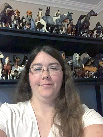 Stephanie is from Quebec, Canada and has been collecting model horses since 2003. Her first models were the Grand Champions line, which she has many of, and her first Breyer horses were the Classic Spirit Kiger Mustang Family set. She says she can't choose a favorite mold, because there are too many pretty models to choose from, but Arabians, Thoroughbreds, Stock Horses and Drafts make up most of her collection. The classic Mustangs have a soft space in her heart though, and she has most of them. Her focus for IDYB will be on research, updating images, and some site programming.
